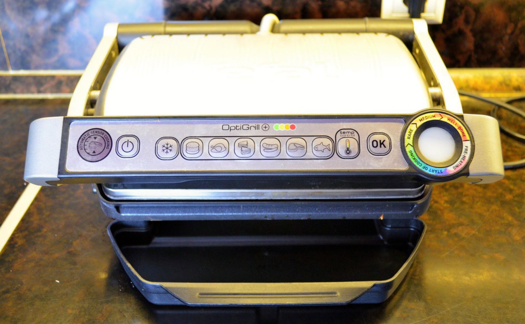 Я хотела разнообразить семейное меню полезными блюдами без лишнего масла. Муж любит мясо, а дети капризничают к овощам, поэтому помощник стал необходимостью. Мы решили приобрести электрогриль для готовки прямо на кухне. Выбор пал на модель Tefal Optigrill+ GC712D34 с автоматическим контролем.